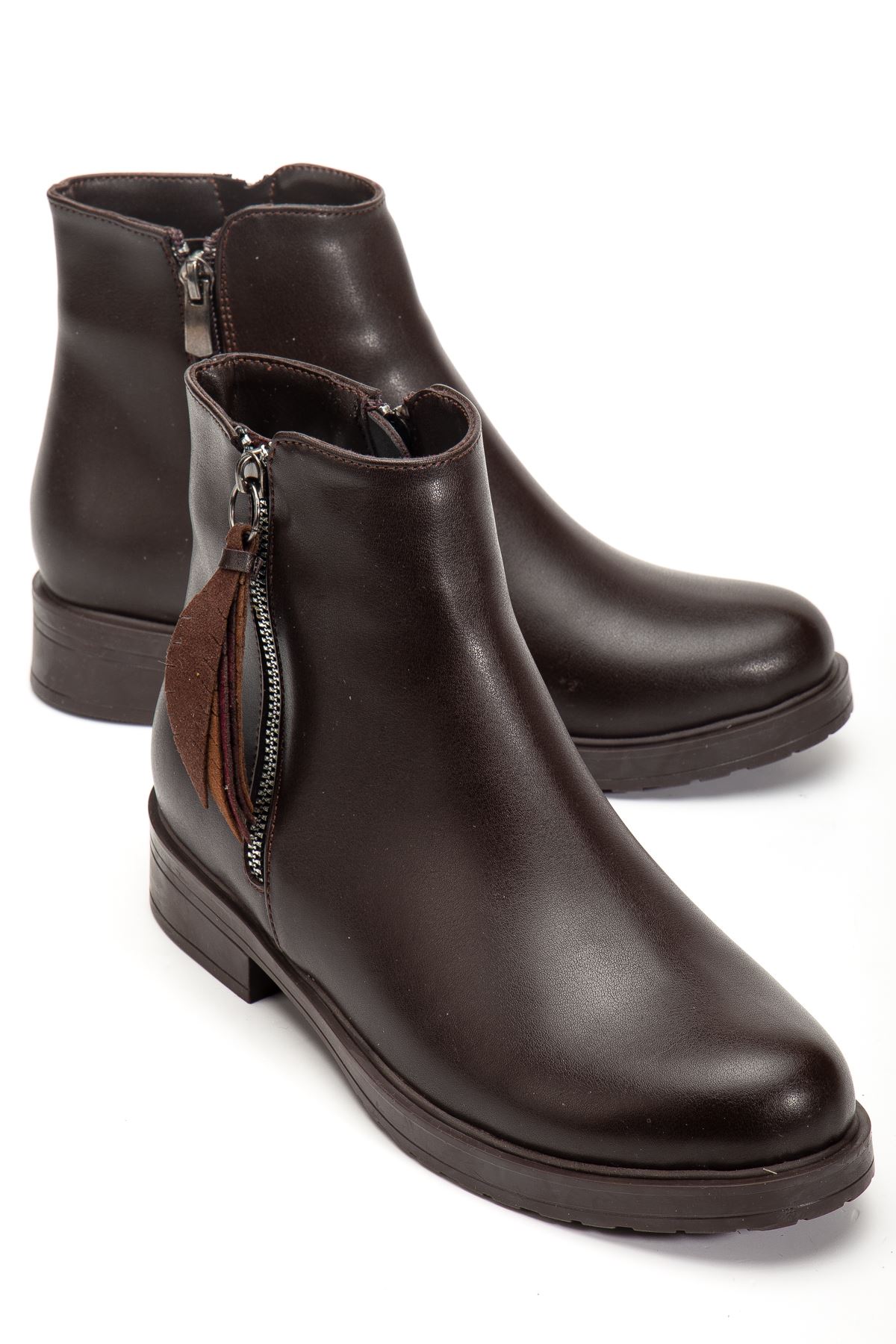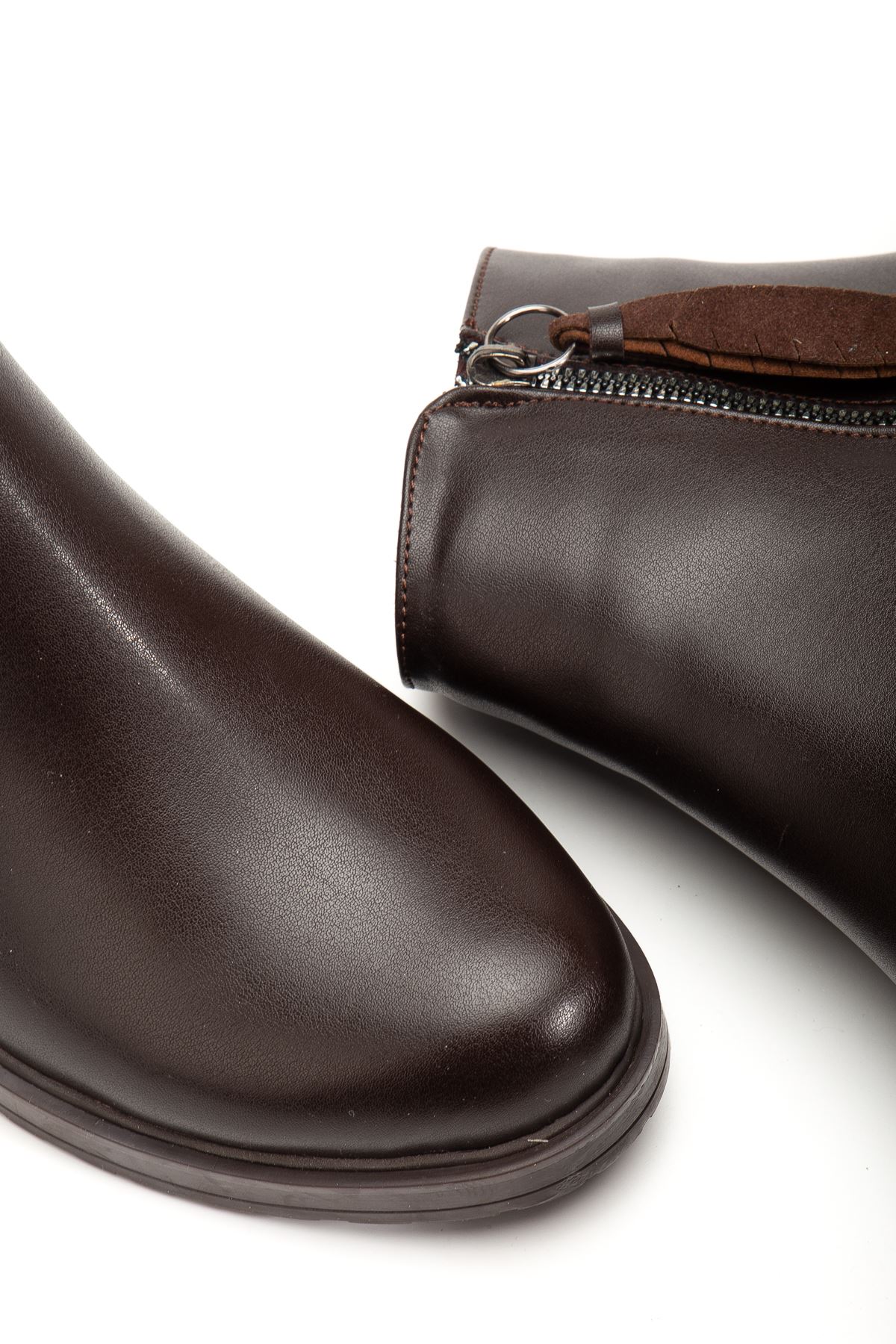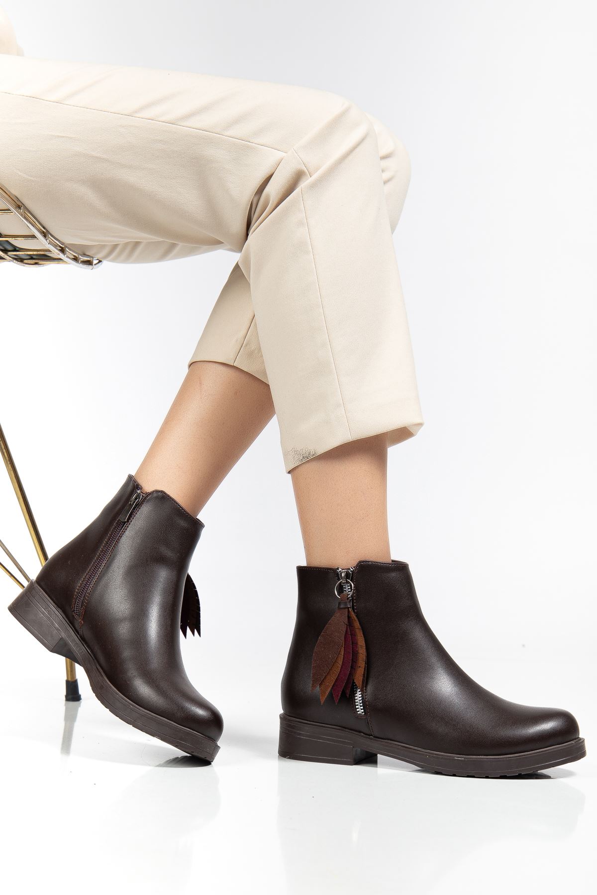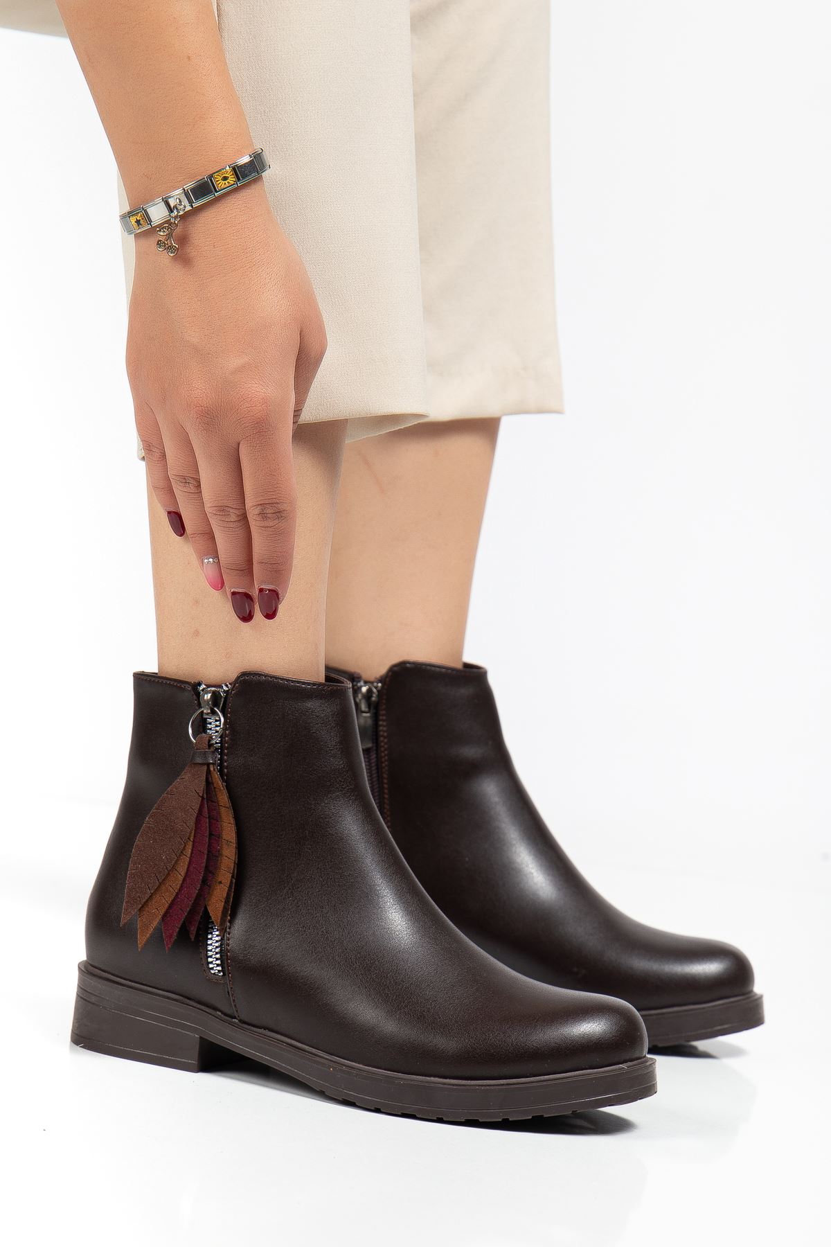 165-205 Kahve Yaprak Desenli Fermuarlı Günlük Kadın Bot - kopya