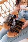 169-082 Siyah Ortopedik Hakiki Deri Kadın Terlik