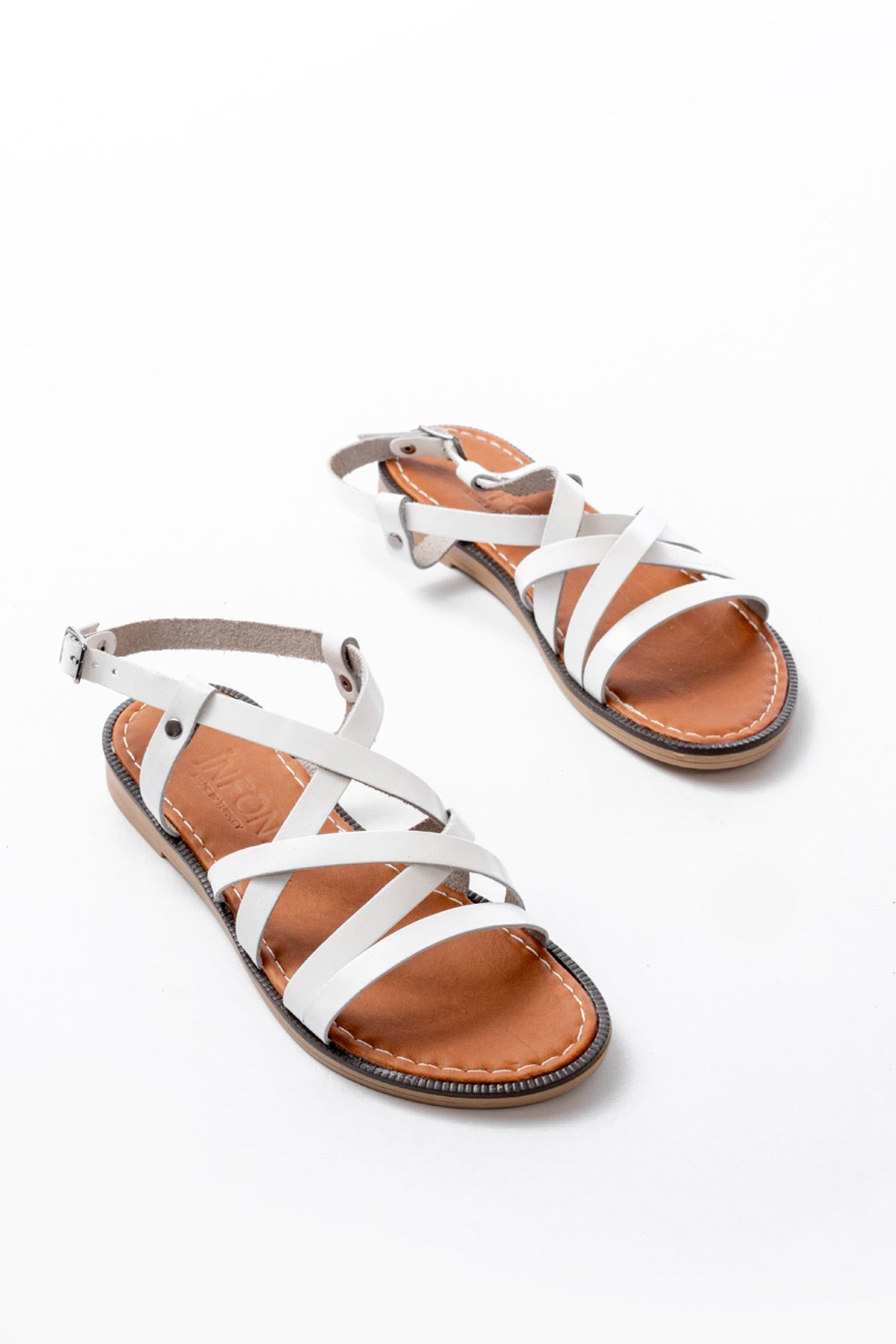 1001-1001 Beyaz Bilekten Bağcıklı Kadın Sandalet