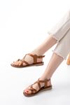 731-045 Taba Çapraz Hakiki Deri Dolgu Topuklu Günlük Kadın Sandalet