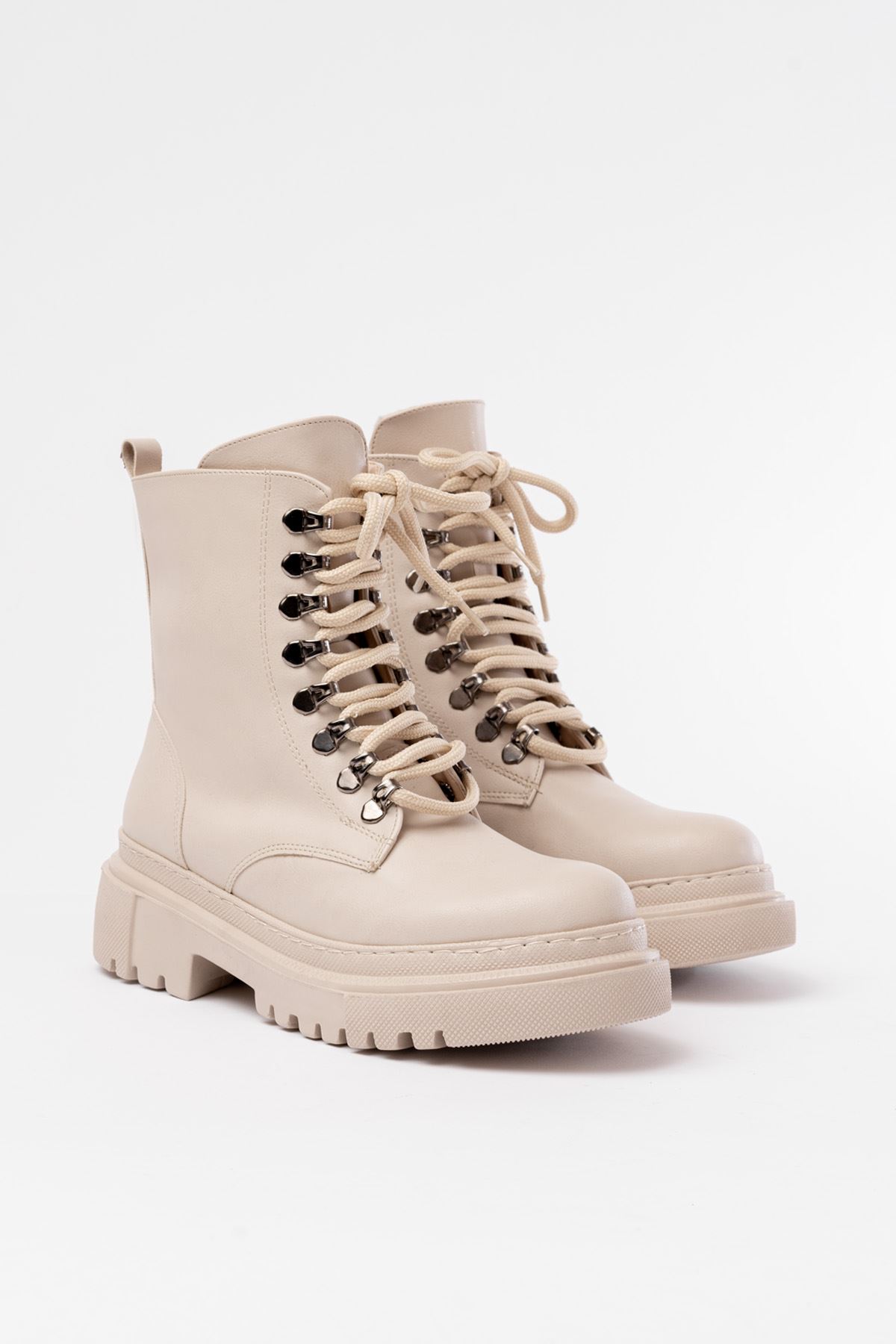 165-225 Bej Cilt Bağcıklı Fermuarlı Günlük Kadın Bot