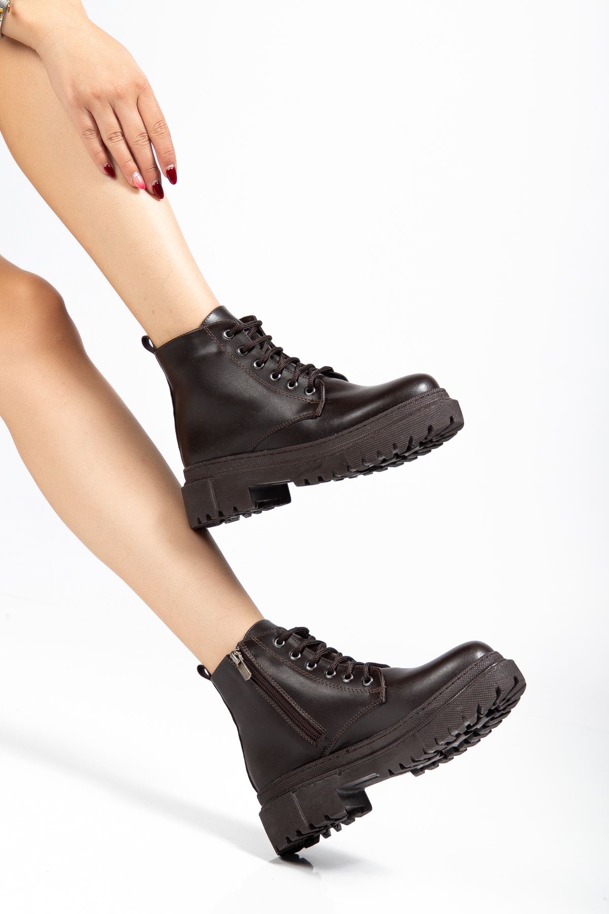 812-296 Kahve Bağcıklı Fermuarlı Günlük Kadın Bot