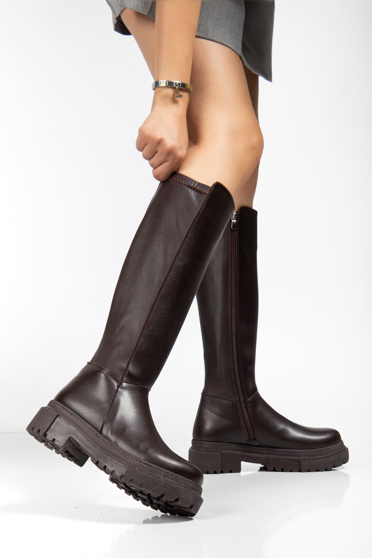 812-300 Kahverengi Fermuarlı Günlük Kadın Çizme