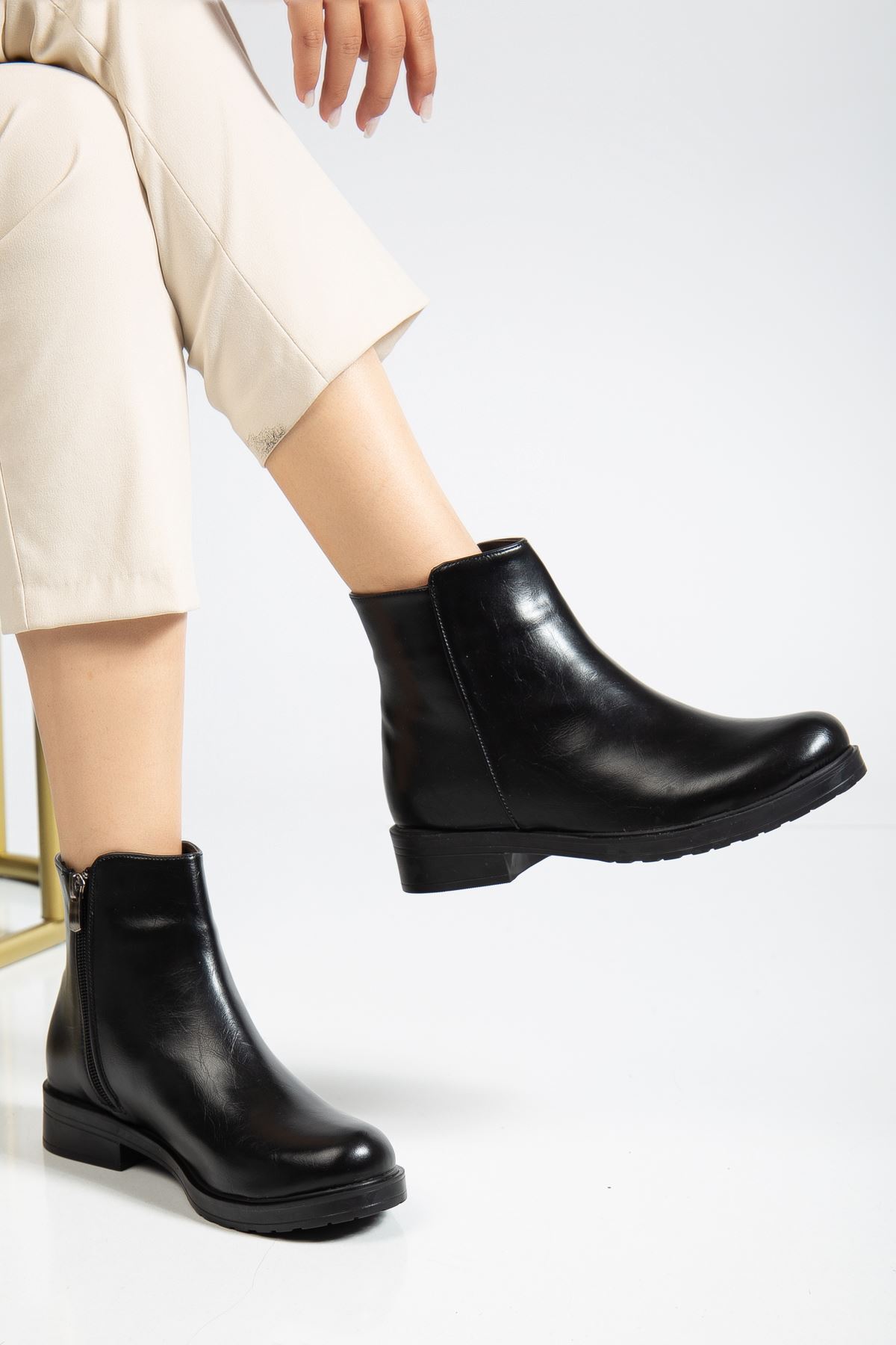 868-356 Siyah Rugan Bağcıklı Fermuarlı Günlük Kadın Bot