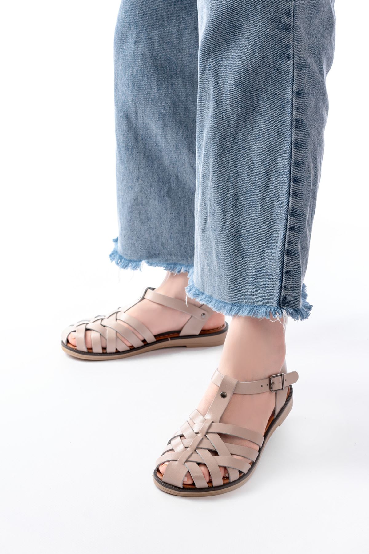 K-11 Beige Casual Cross-Heeled Women's Sandals