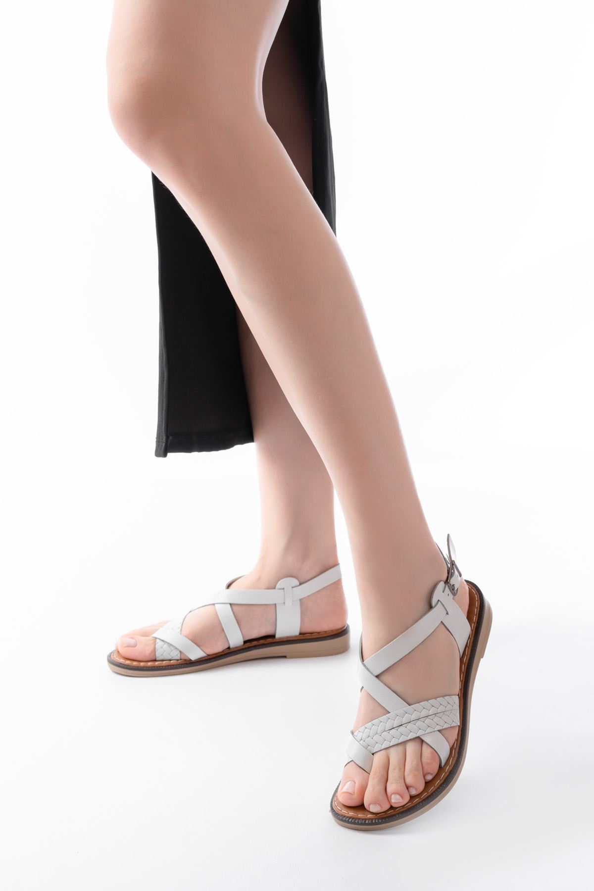 692-564 White Orthopedic Sole Cross Buckle Women's Sandals