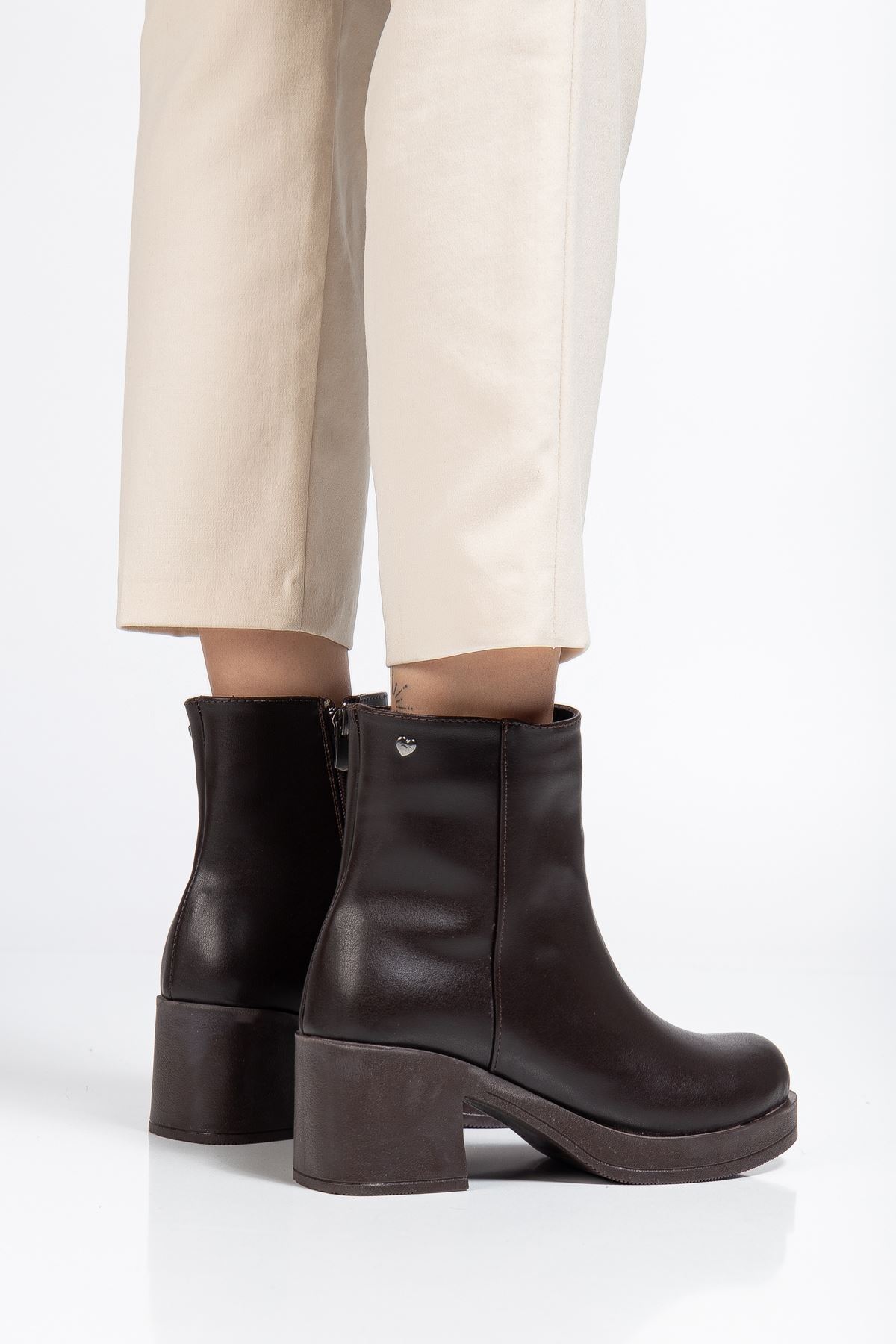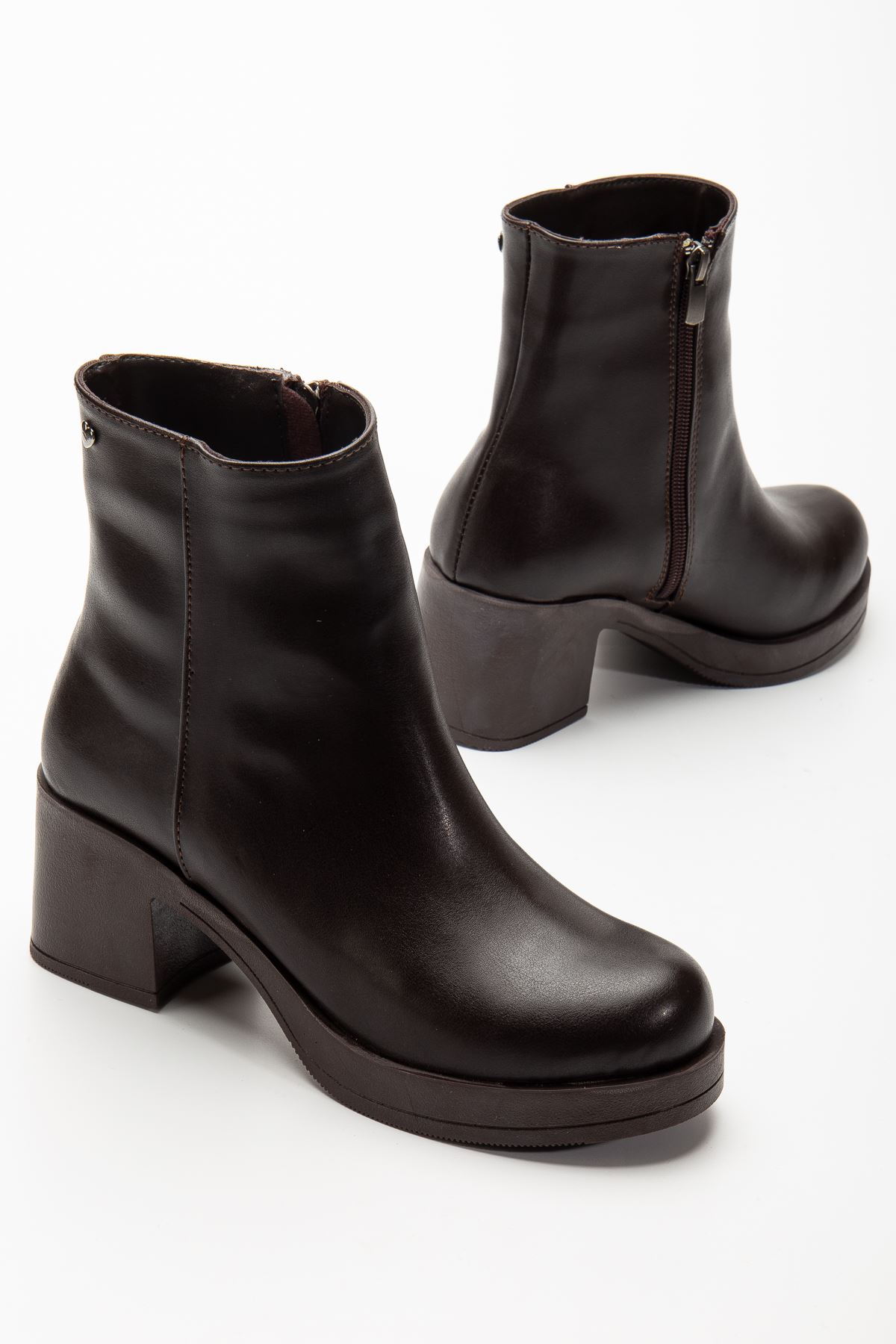 HC-2700 Brown Heeled Zippered Women's Boots