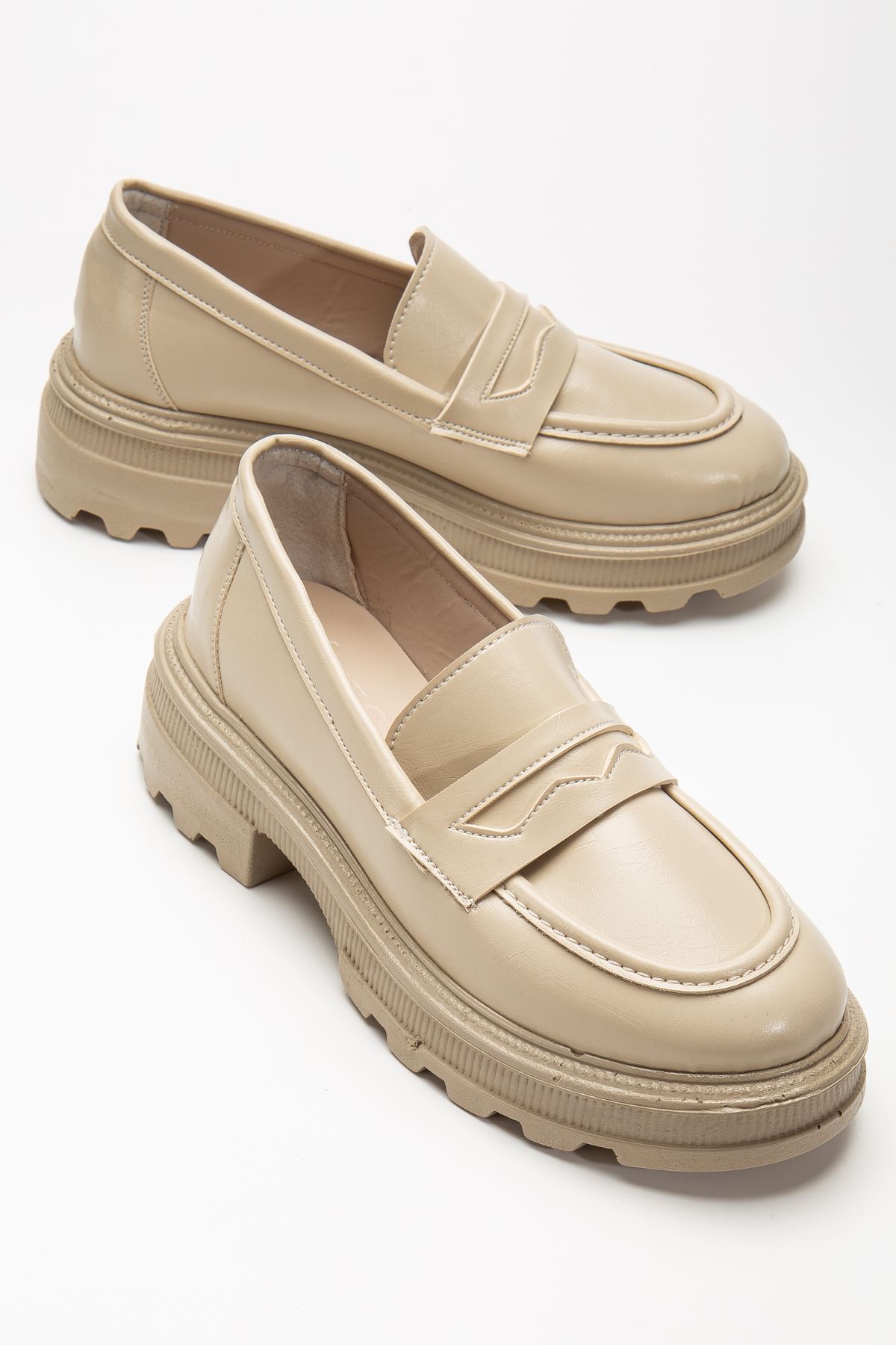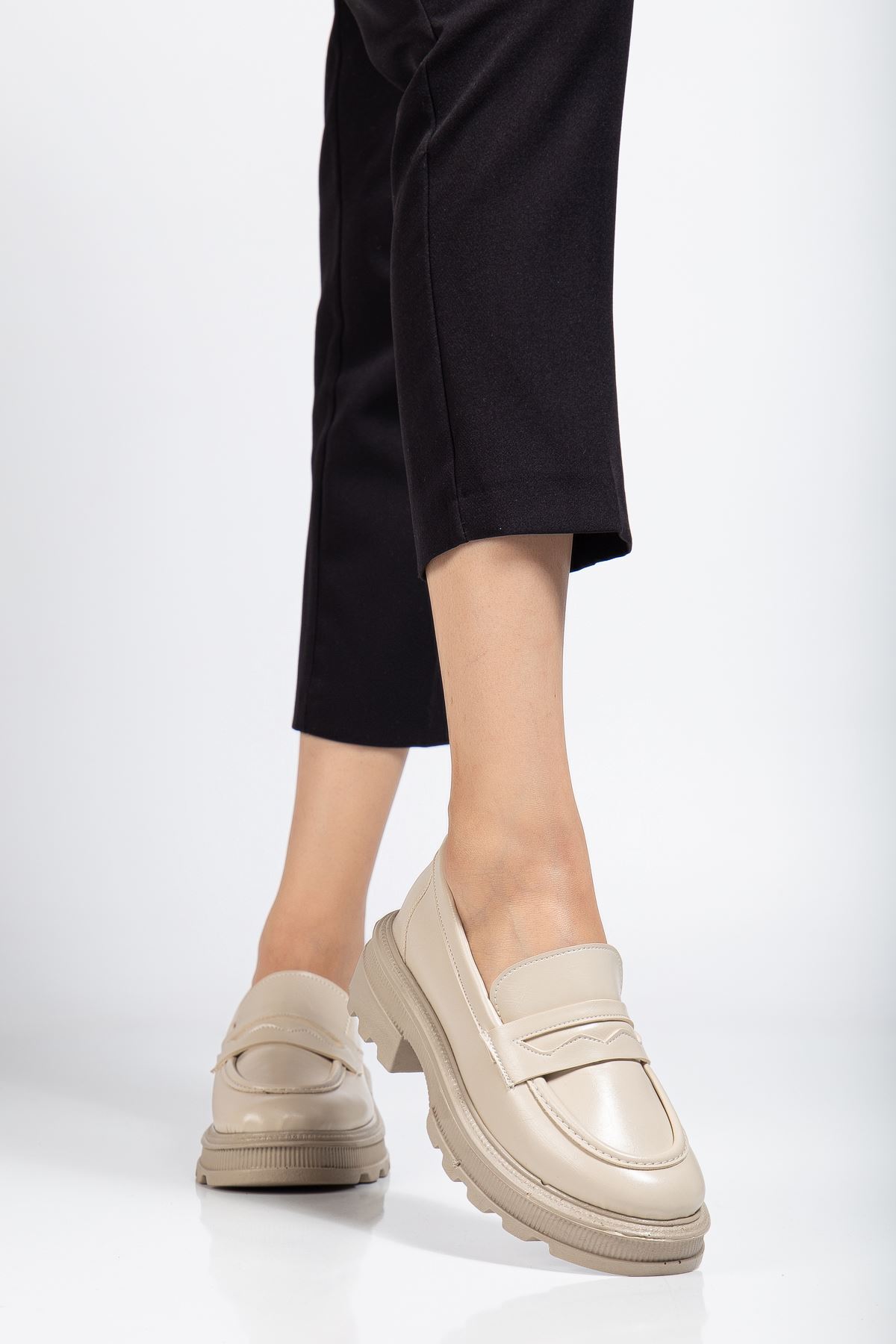 NVL-506 Beige Casual High Heels Platform Loafer Women Shoes