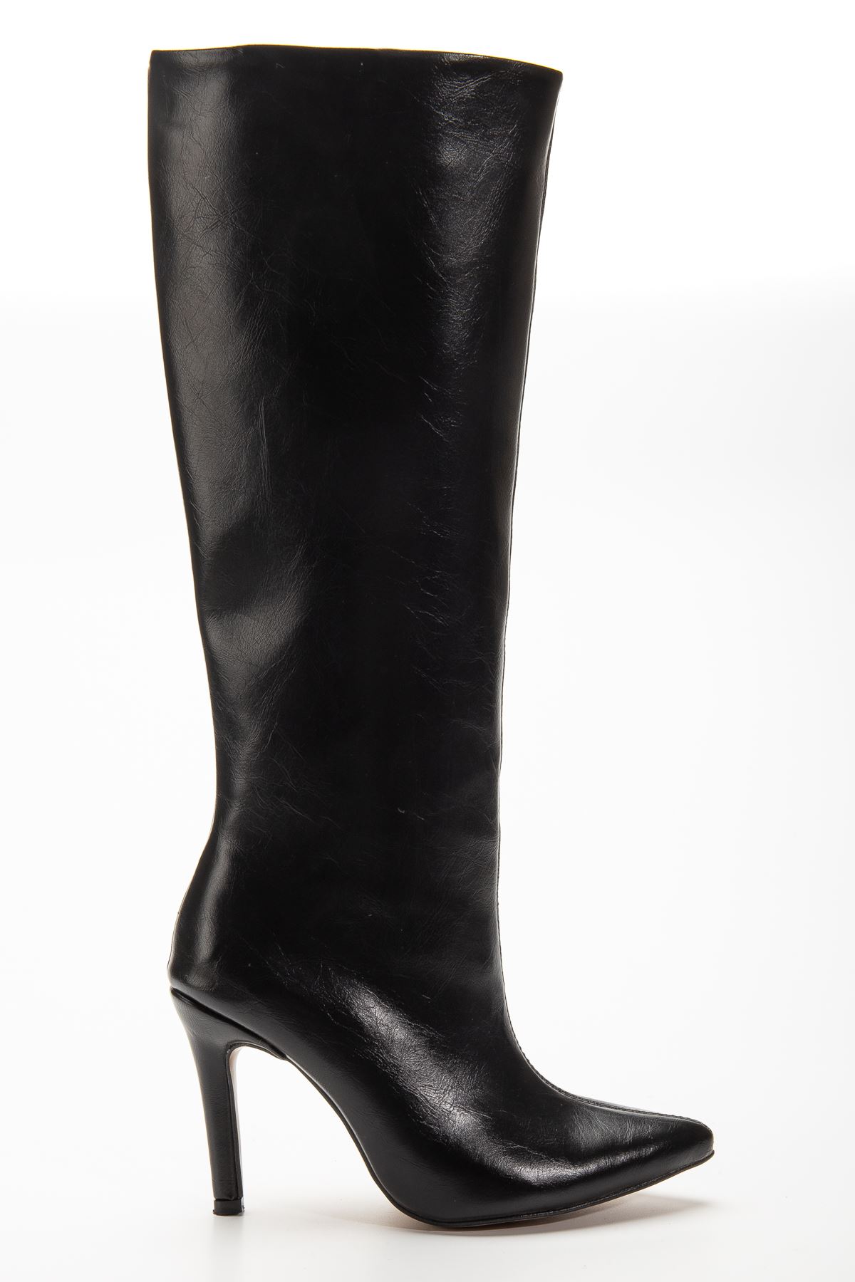 RS-2432 Black Croco Heeled Zippered Casual Women's Boots