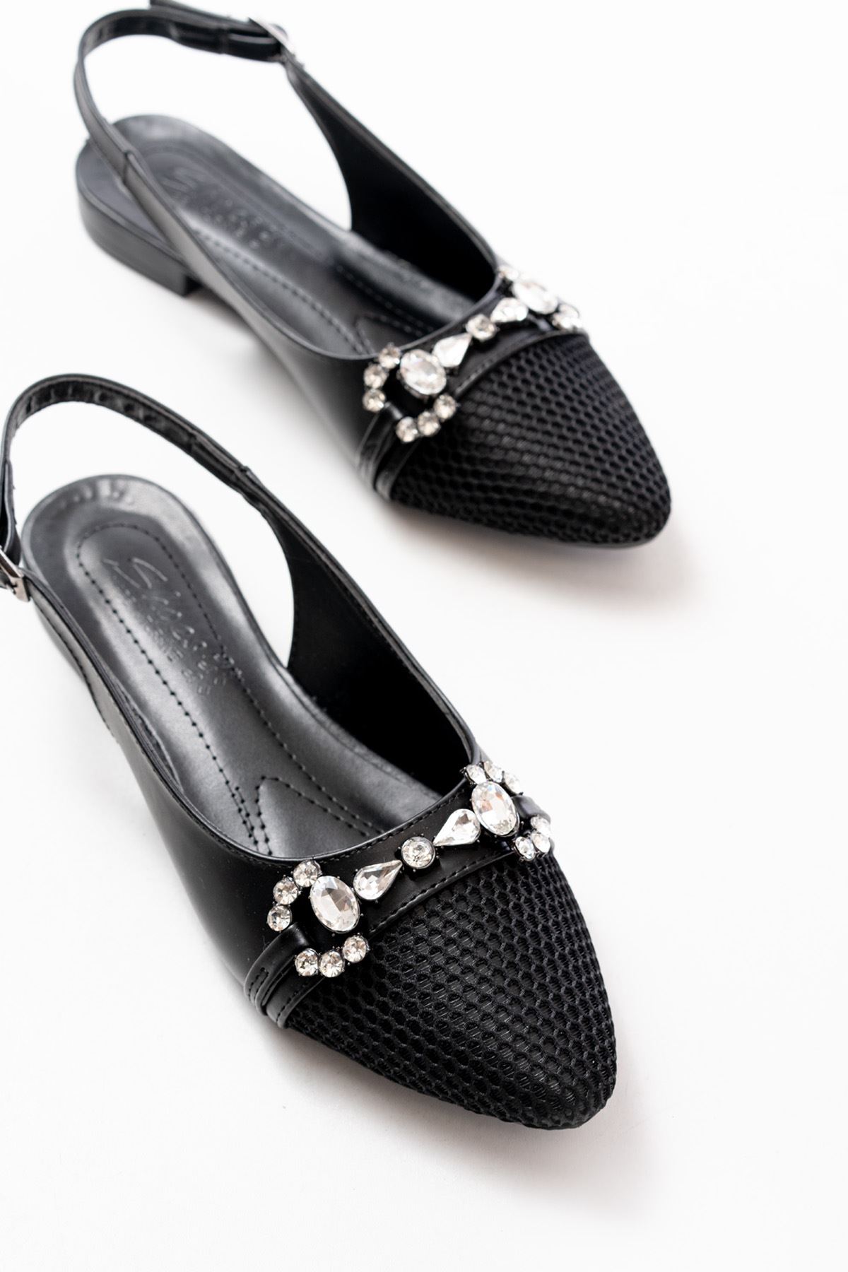 İNF-120 Siyah Günlük Fileli Taş Aksesuarlı Kadın Babet