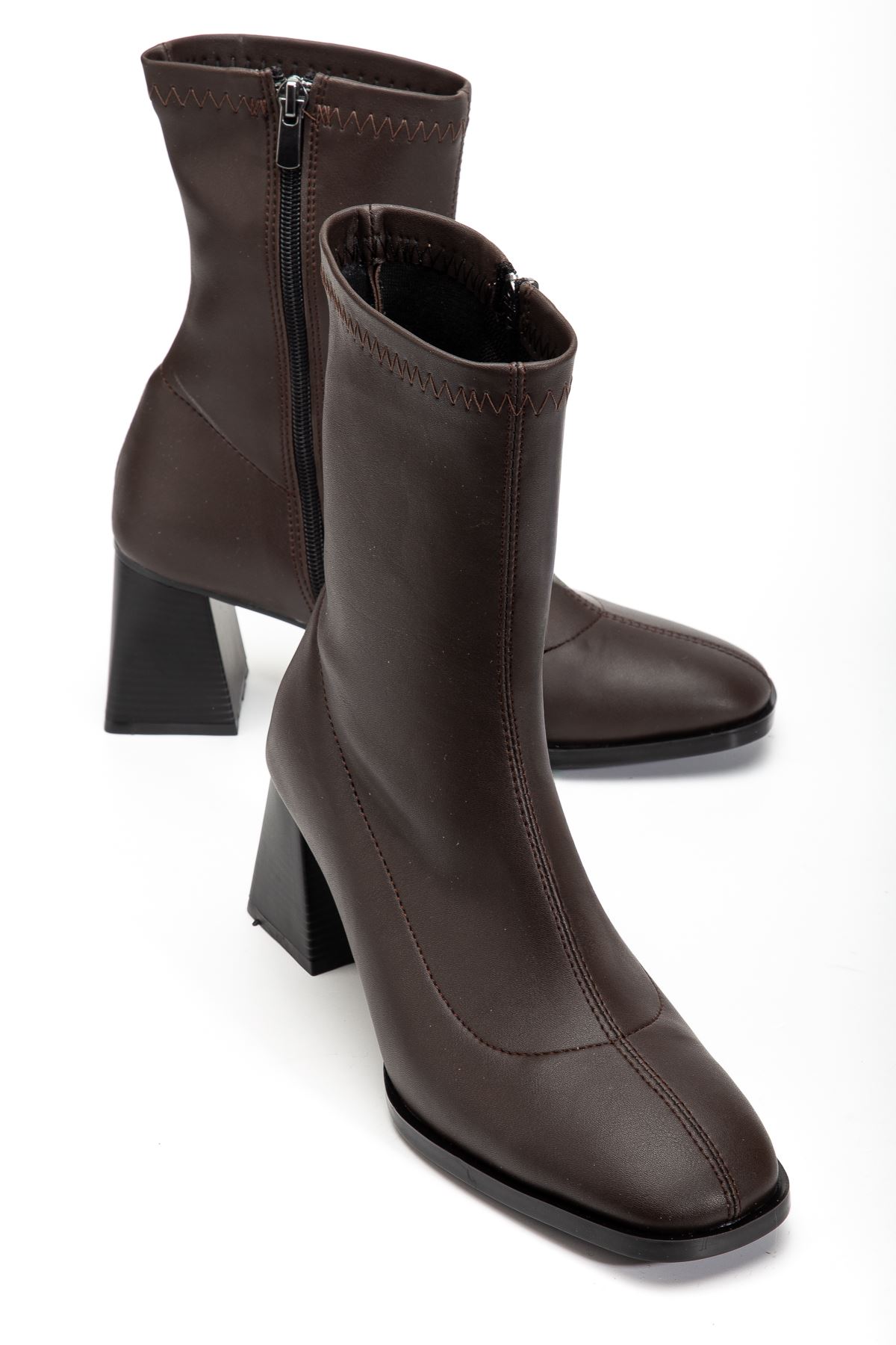 HC-2700 Kahverengi Topuklu Fermuarlı Kadın Bot