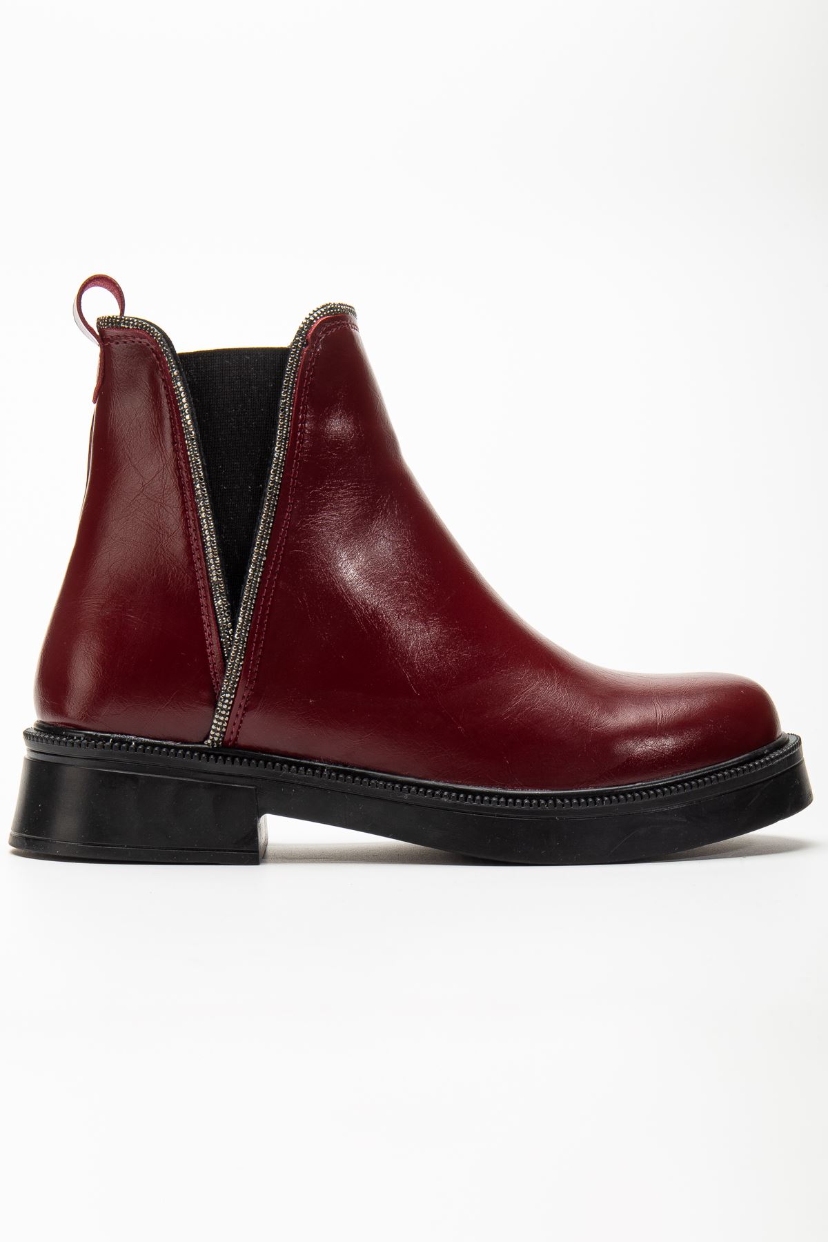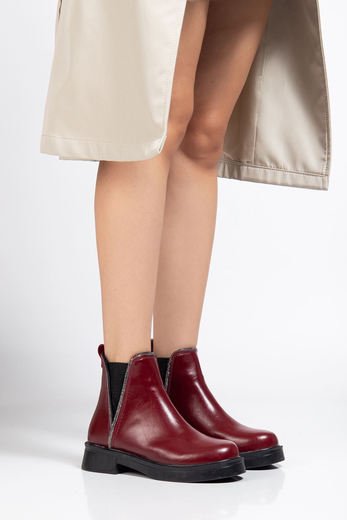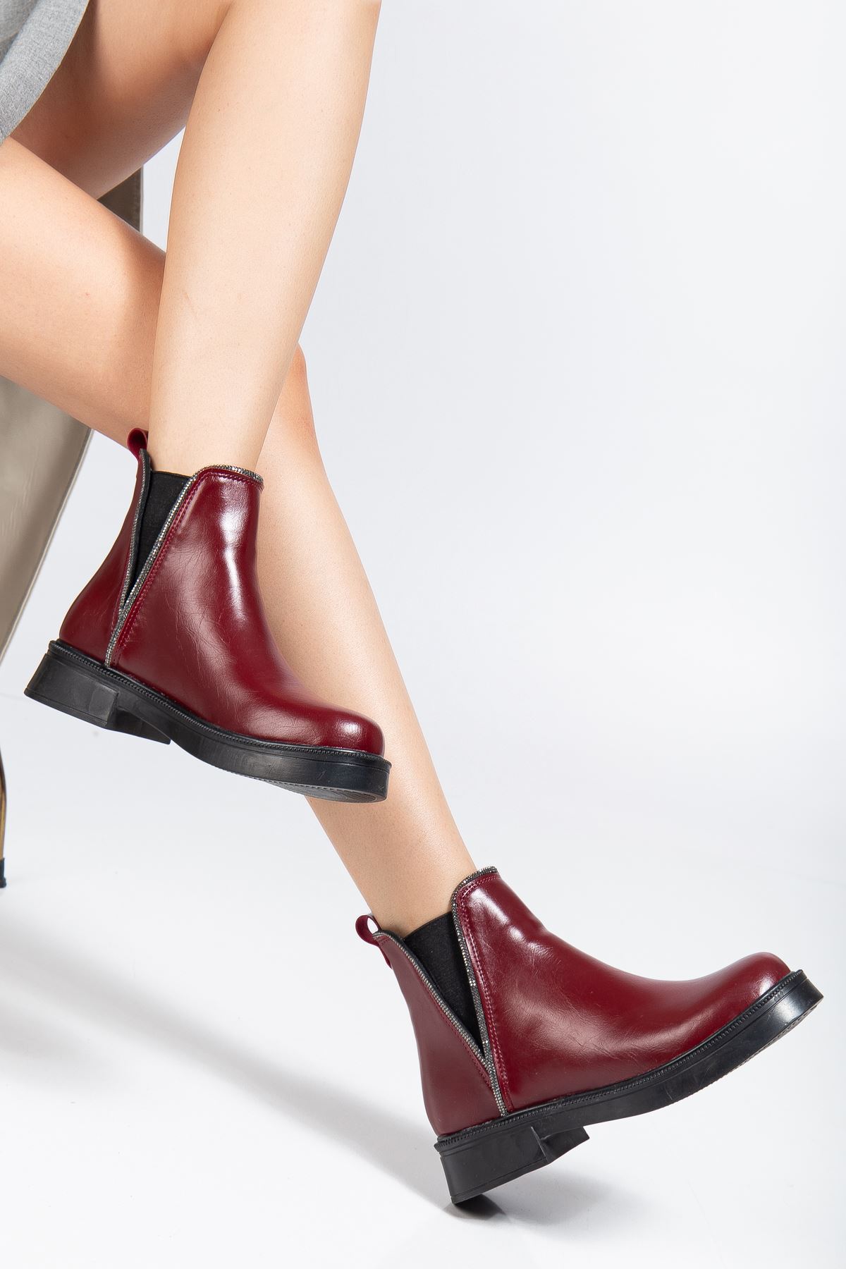02-02 Bordo Kırışık Rugan Taş Aksesuarlı Lastikli Günlük Kadın Bot