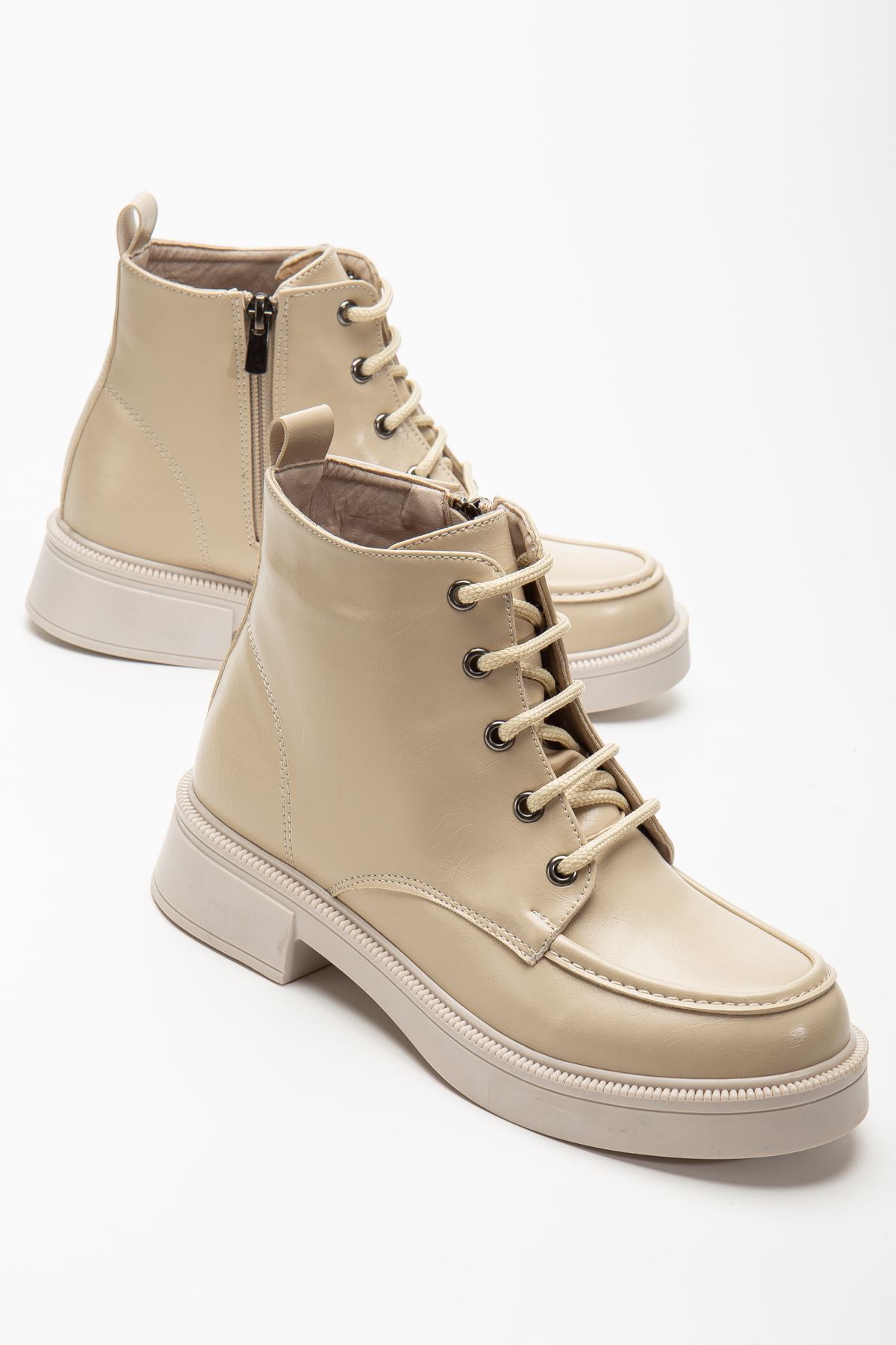 02-2001 Bej Kırışık Rugan Bağcıklı Fermuarlı Günlük Kadın Bot
