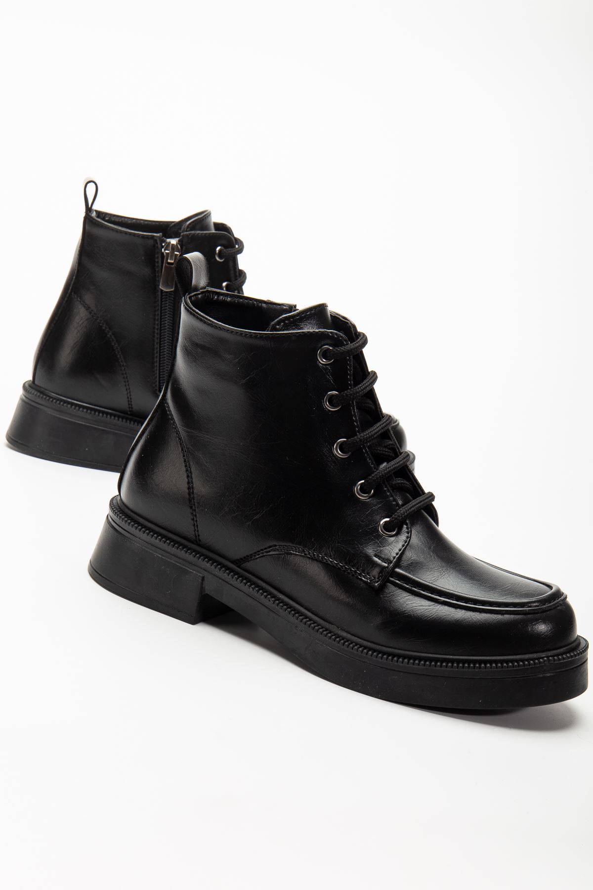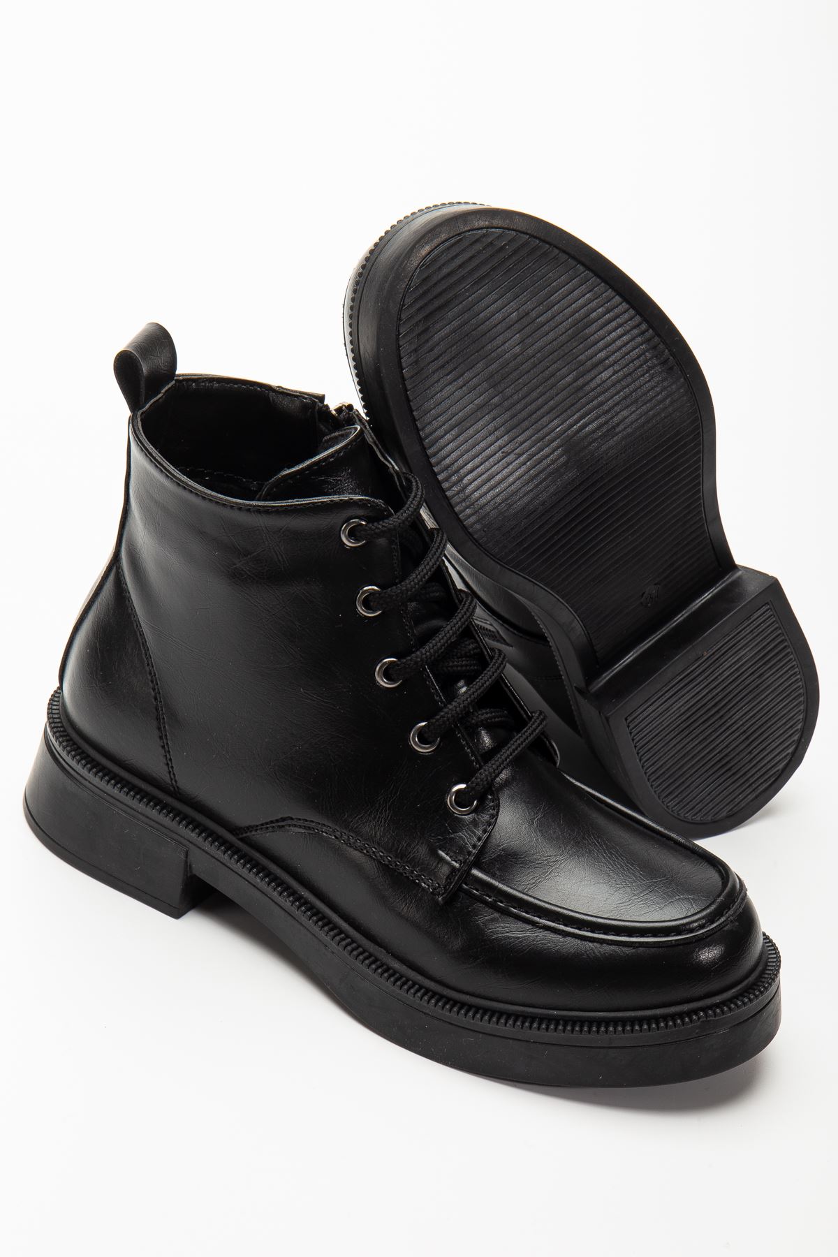 02-2001 Siyah Kırışık Rugan Bağcıklı Fermuarlı Günlük Kadın Bot
