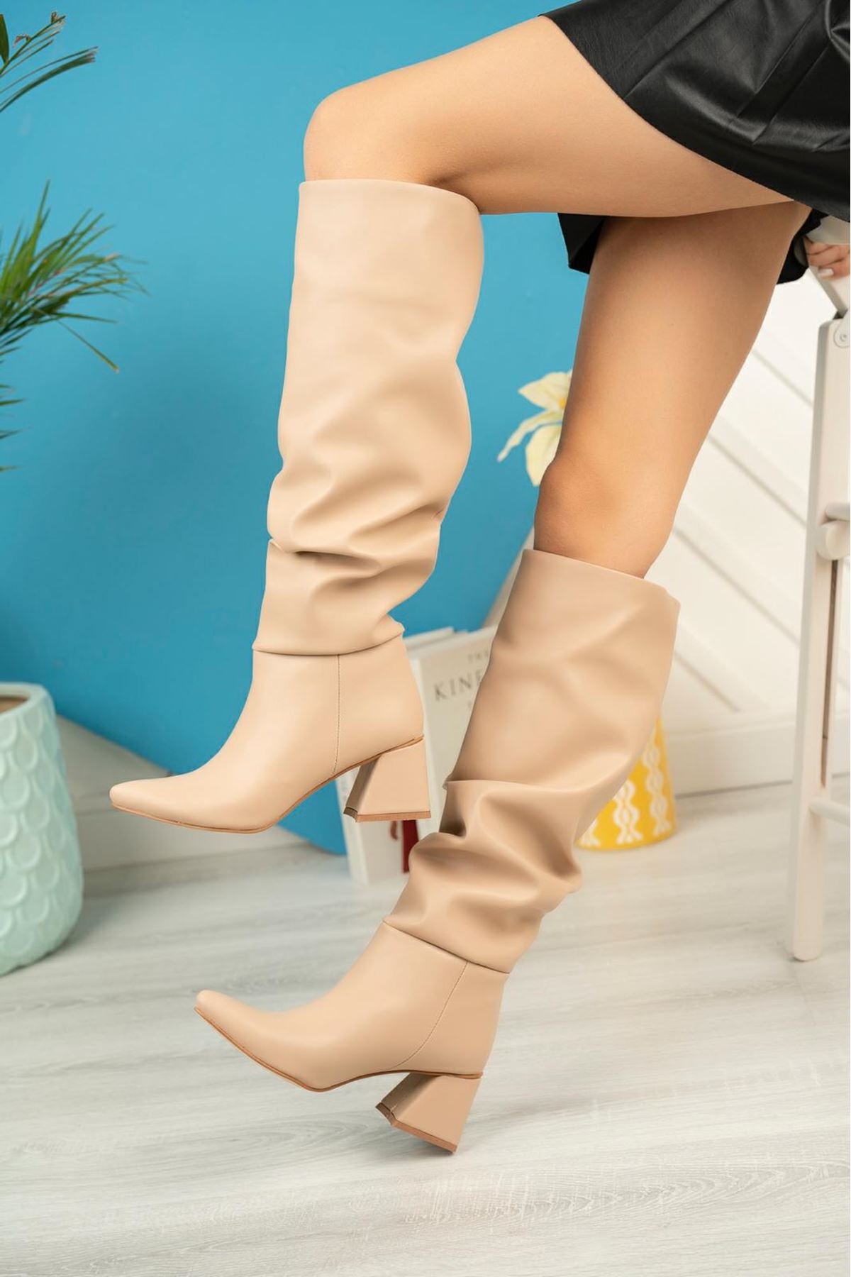 RM-505 Бежевый каблук на молнии Повседневные женские сапоги