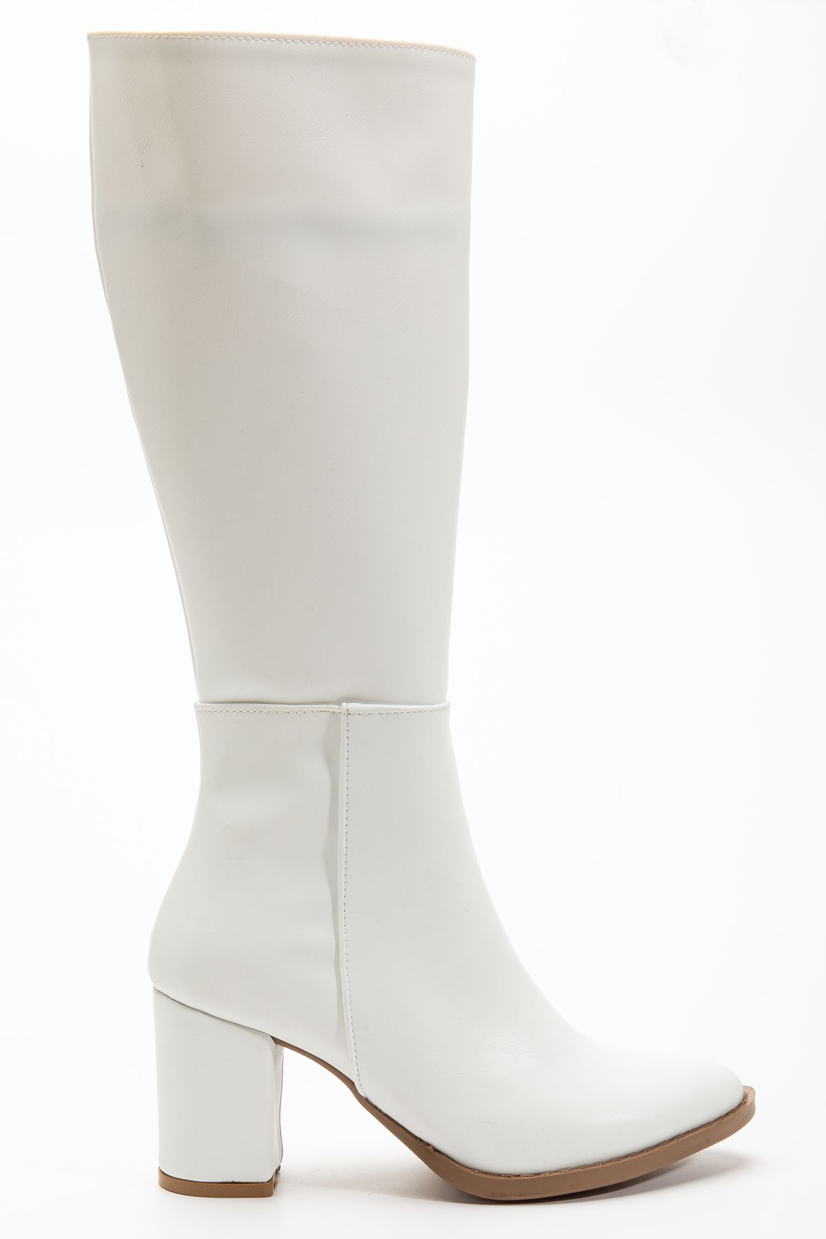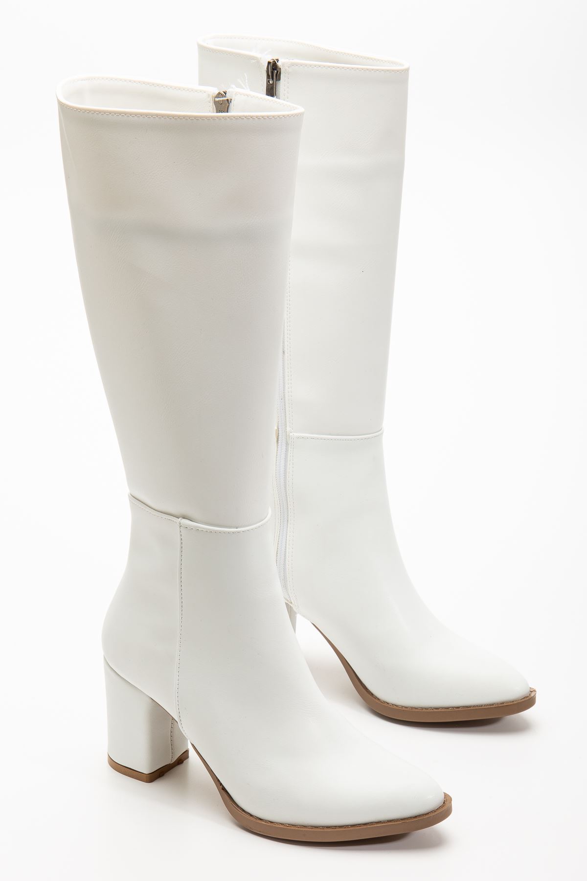 YSN-4422 Beyaz Cilt Topuklu Kadın Çizme